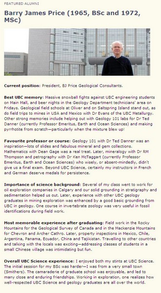 1977 With C.I. Godwin, Ph.D. explored and staked several kimberlitic diatremes in the Rocky Mountains, Southern B.C. Optioned these diamond properties to Esso/Selco/Silver Standard and later C. Fipke and Superior Oil. 1976 Staked Mountain Diatreme Kimberlite, Northwest Territories. Optioned to C. Fipke and Superior Oil. Staked several VMS properties in the Smithers area, B.C.
